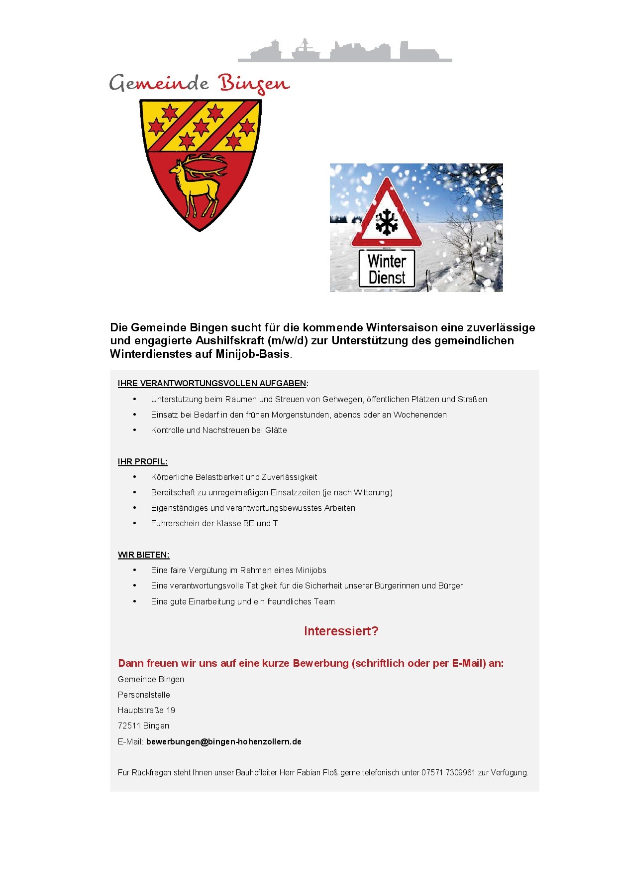 Stellenausschreibung Aushilfskraft Bauhof Winterdienst